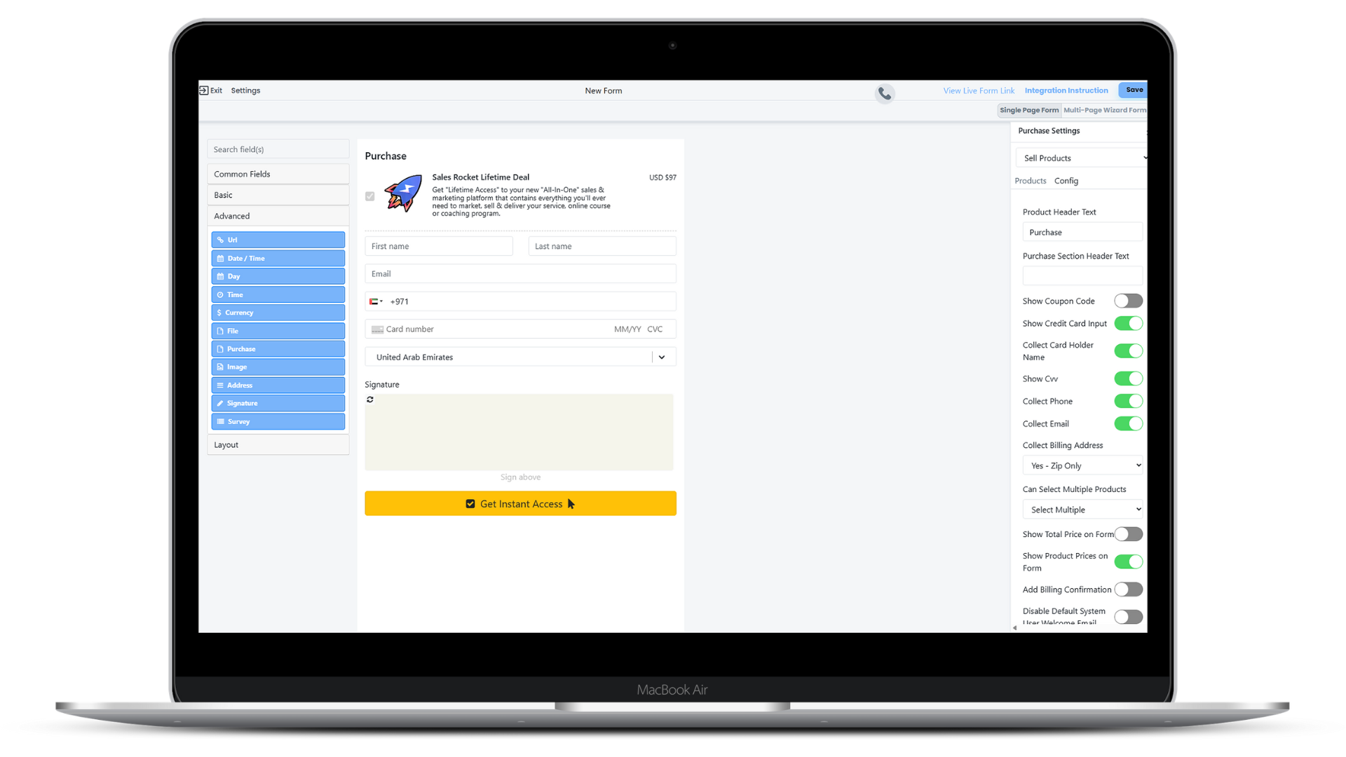 Use our drag-and-drop form and survey builder to collect leads that get stored directly in Sales Rocket. Accept online payments, setup subscriptions, setup fees, multiple order bumps, cart mode and more.